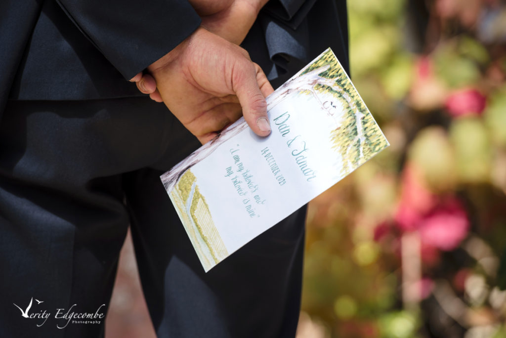 Wedding invitations went out for the December wedding which let us know that this was going to be a very special day! Grace Horwood hand-painted the invite with scenes from One Paddock Winery and finished it with a bunch of flowers painted on a vellum band.