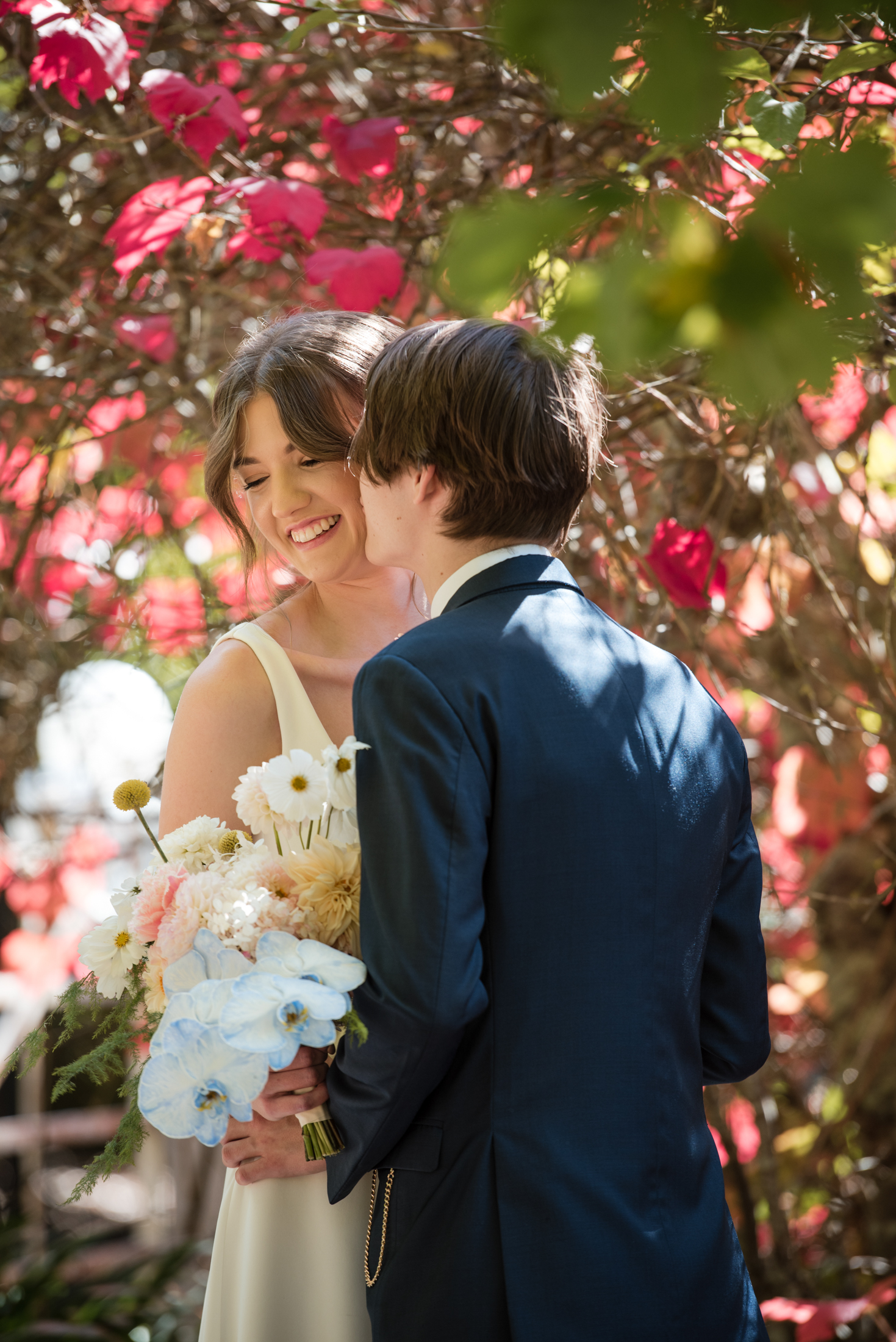 A ‘first look’ (seeing each other before the ceremony) was the order of the day, and most of their photos were taken before the ceremony, so they walked down the aisle together.