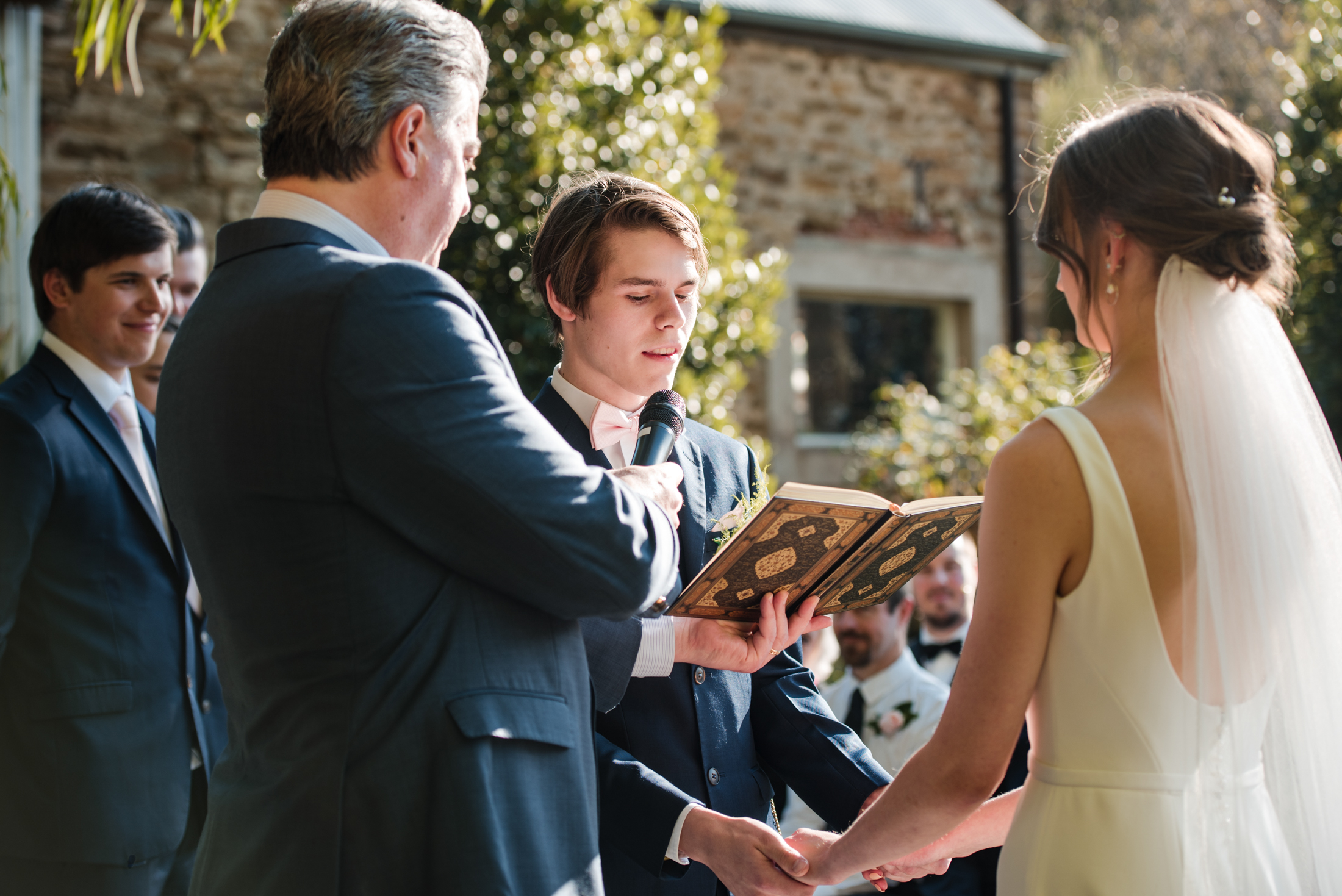 Sam and Sarah met when they first went to youth groups together and became youth leaders. Their pastor’s wife thought that Sam liked Sarah, but it took 3 years before they worked it out themselves and started dating. Sam makes Sarah laugh, and as they say, ‘happy wife, happy life’. They decided they made the perfect pair and married on the lawns at Ten Miles East by two celebrants, with an autumn backdrop reflecting in the dam.